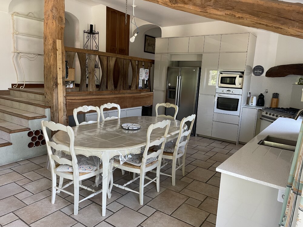 Inside, La Maison offers a large open plan living area, a fully equipped kitchen and several comfortable bedrooms, providing great flexibility for all guests. The kitchen provides a great hub for dining and has direct access to the rear terraces, pool and jaquzzi.