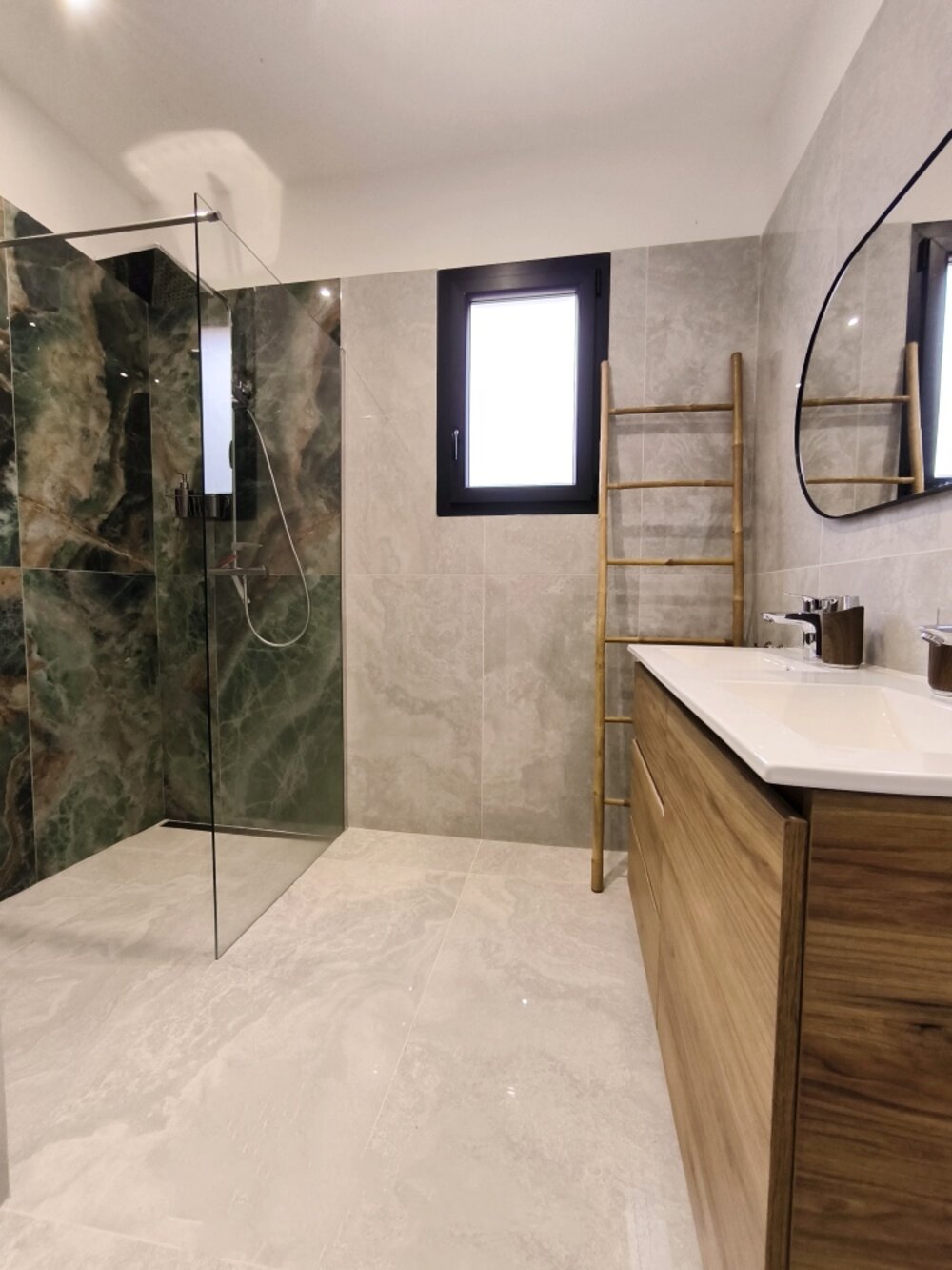 Three bedrooms: 2 with double beds (140/190 cm), and 1 with a 160/190 cm bed, flat-screen TV and wardrobes. Air conditioning and heating are available throughout the house.