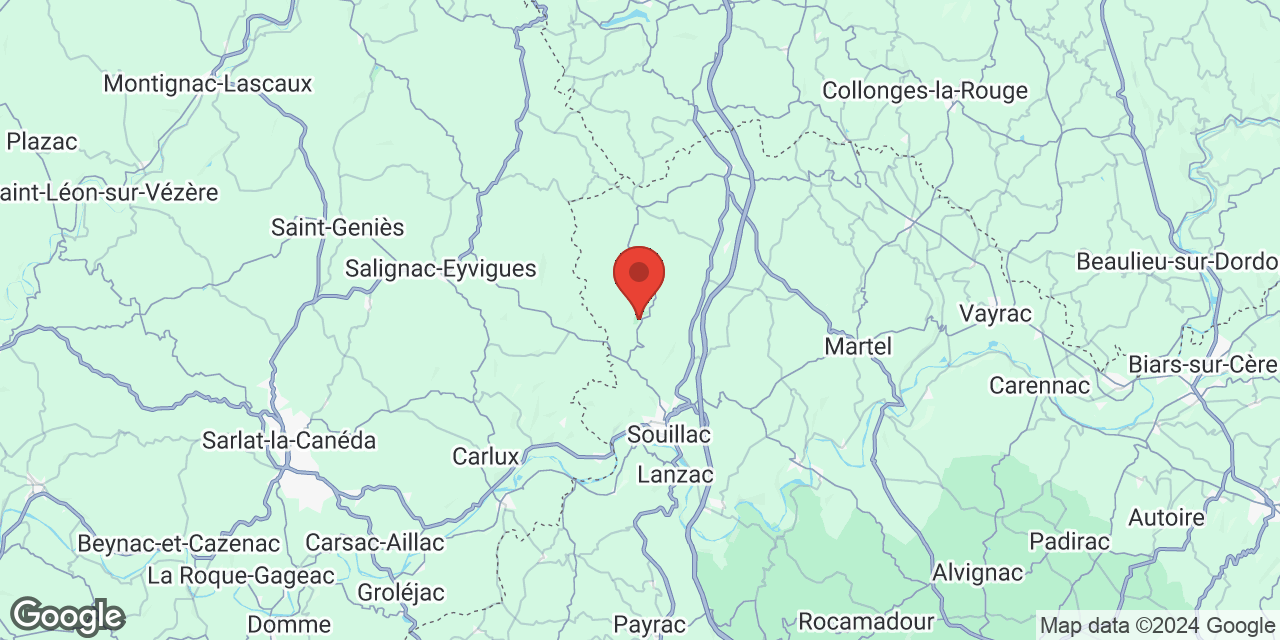 Although in a calm environment you are only a short distance from the many sites to visit in as well the Dordogne as the Lot area. Le Bouyssonnet is only 7 km away from Souillac and the river the Dordogne. The lovely Midieval town Sarlat is at 30 km and Rocamadour only 25 km. There are several big supermarkets in Souillac.