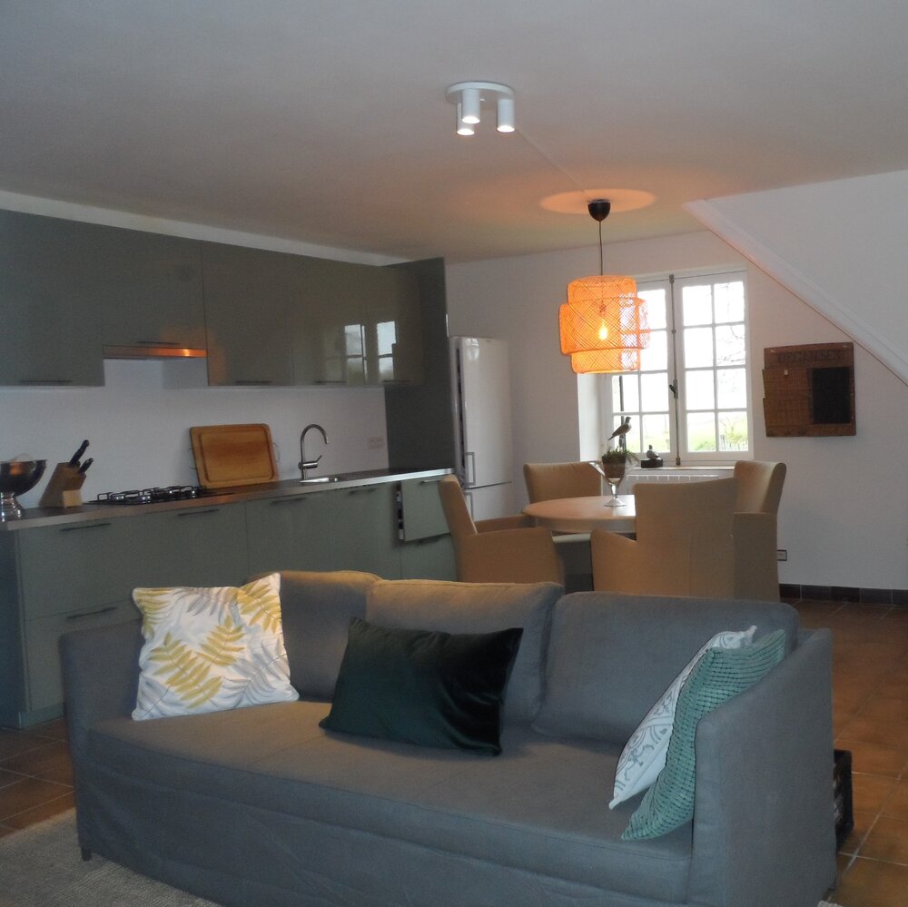 La maison de vacances a deux étages. L'entrée au premier étage (accessible par un escalier extérieur) mène au confortable séjour avec cuisine ouverte. Il y a aussi une chambre confortable avec un lit double et une salle de bain avec baignoire et toilettes. Il y a un espace de couchage supplémentaire au deuxième étage. L'intérieur est entièrement équipé et offre tous les éléments essentiels pour un séjour agréable.