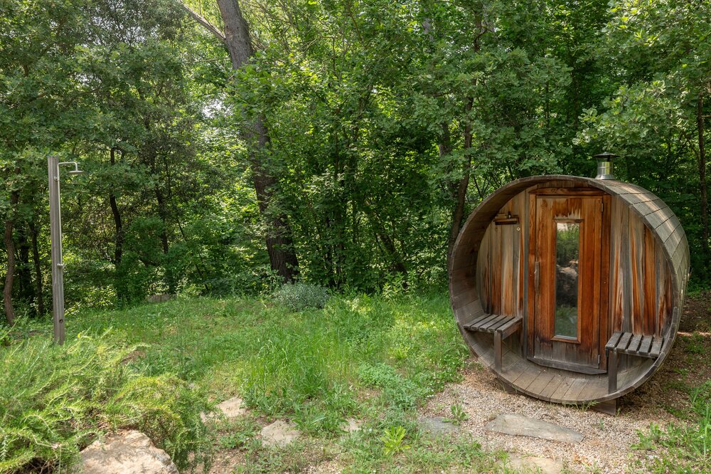 La Villa Beau Source est une villa luxueuse et chaleureuse avec piscine privée, sauna et four à pizza à Villecroze, en Provence.