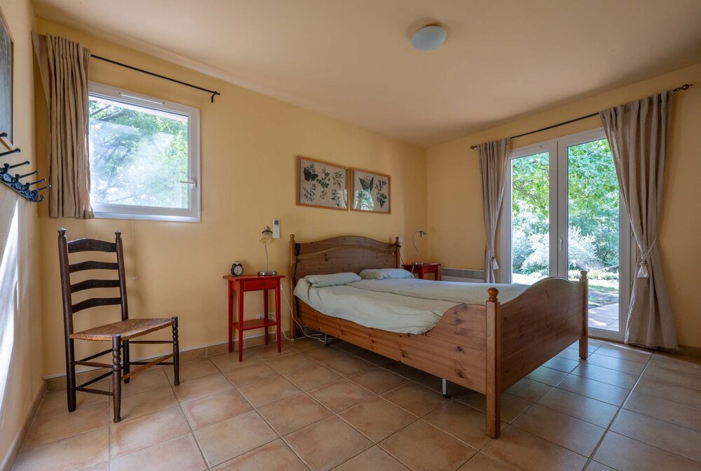 La villa dispose de trois chambres doubles, chacune avec climatisation et salle de bains privée. Une chambre au rez-de-chaussée est accessible aux fauteuils roulants et dispose d'un accès direct à la terrasse et à la piscine par un chemin pavé. Deux lits simples confortables sont disponibles sur demande moyennant un supplément, permettant à 8 personnes de passer la nuit.