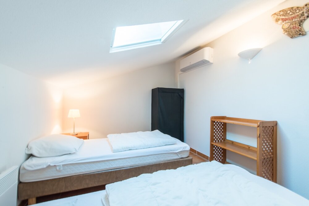 Au rez-de-chaussée se trouvent deux chambres pouvant chacune accueillir deux personnes avec climatisation. Récemment rénové salle de bain avec douche et lavabo. Toilette séparée. Les lits sont faits à votre arrivée.