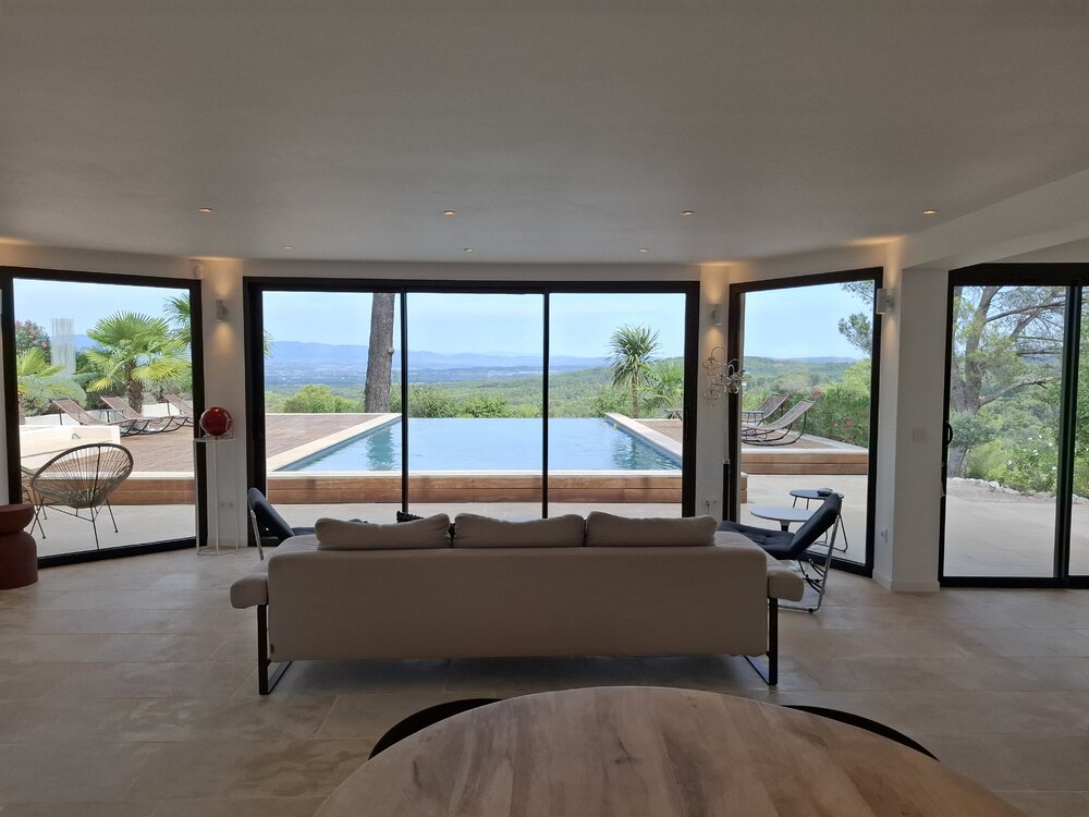 Nestled in the Provençal countryside, perched on a rock, this unique villa offers exceptional panoramic views of the Lubéron National Park and breathtaking sunrises.