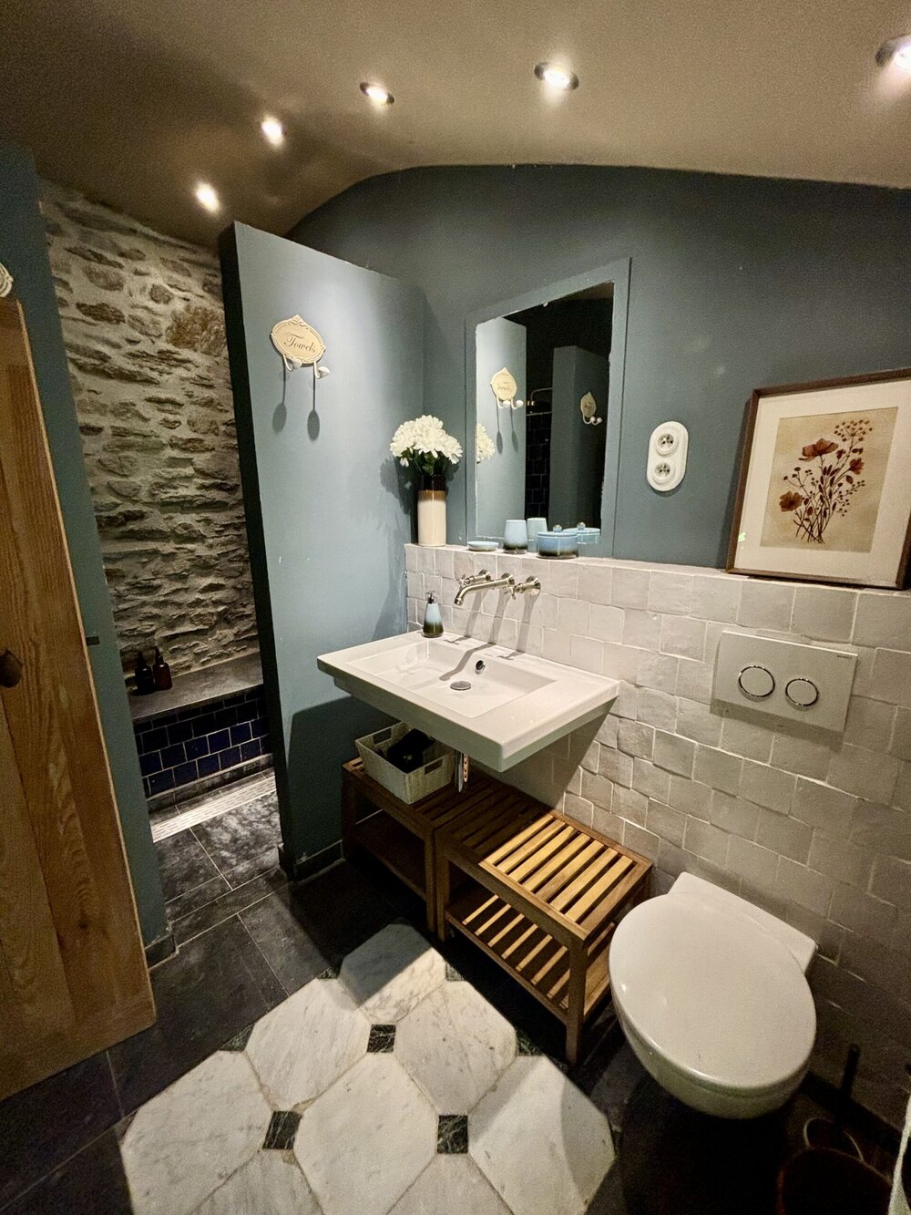 Het het huis werd stijlvol ingericht met oog voor detail en afwerking. Zo werden de muren overal afgewerkt in Italiaans pleisterwerk en werden de badkamers afgewerkt met Marokkaanse zellige tegels.