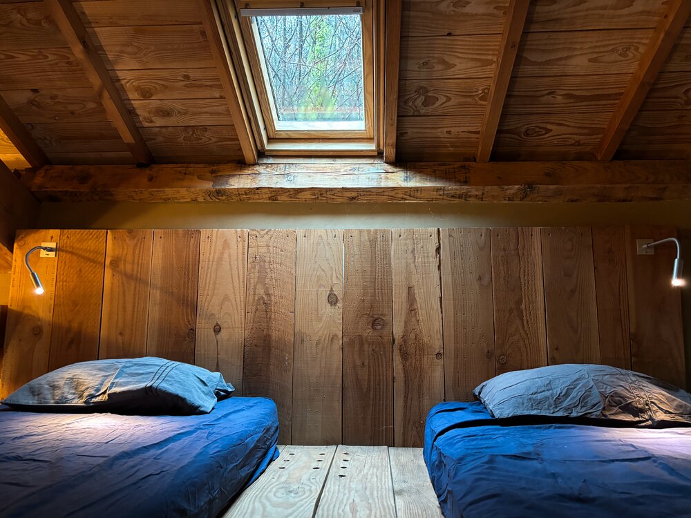 - een 4-persoonsslaapkamer met dubbel bed en 2 eenpersoonsbedden op een mezzanine, en een aanpalende badkamer (dubbele inloopdouche, dubbele wastafel en toilet)