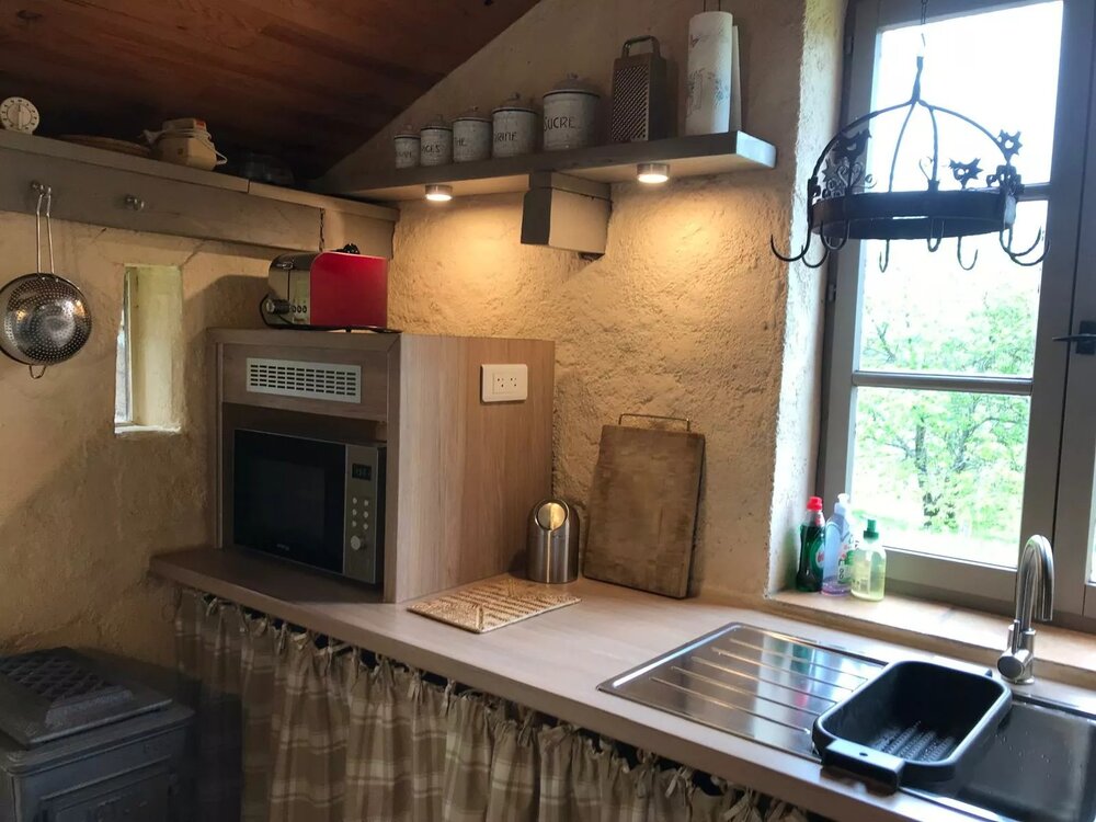 De keuken is van alle gemakken voorzien. Een vierpits inductiekookplaat, 'n koel- vriescombinatie, magnetron-combi-oven, staafmixer, waterkoker, filter-koffiezetapparaat, Senseo- en Dolce Gusto-apparaat, zijn in de keuken aanwezig, evenals voldoende potten, pannen en bestek. Ook vindt u in de keuken een tweede houtkacheltje.